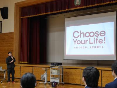 11月12日(水)、ハッシャダイソーシャルの三浦宗一郎様をお招きし、1年生(普通科)・2年生を対象とした社会人講話を実施しました。「それでもなお人生は選べる」という力強いテーマのもと、ご自身の経験を交えた貴重なお話をいただきました。