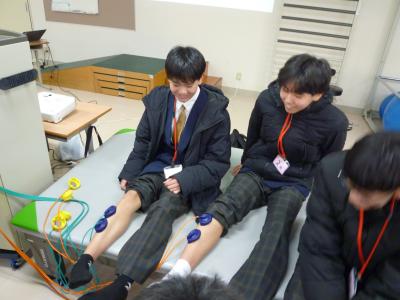 普通科が訪問した、八戸学院大学では施設見学や学食体験を行いました。充実した設備を目にし、生徒たちは感動した様子でした。また、東北メディカル学院では、電気刺激による筋収縮の体験を行い、普段はなかなかできない貴重な経験に興味深く取り組んでいました。