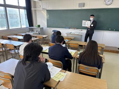 5月20日(火)の放課後、全学年対象を対象に「自衛隊説明会」を行いました。この説明会は、自衛隊の仕事に興味がある生徒に向けて、広報官の方から、自衛隊の仕事や働き方についてお話を聞くことができる貴重な機会です。