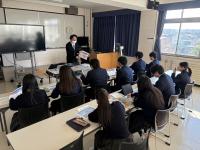 12月10日、1学年を対象に大学等見学会を実施しました。この見学会は、おいらせ町の百石高校支援事業キャリア教育支援の一環として行いました。普通科は八戸学院大学と東北メディカル学院、食物調理科は柴田学園大学と青森中央短期大学を訪問し、学校概要の説明を受けたほか、模擬講義などの体験を行いました。