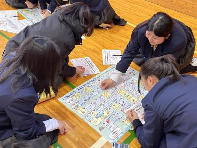 1月21日、第1学年を対象に進路ガイダンスを実施しました。 今回は、将来のキャリアや生活設計について考えることを目的とし、「人生ゲーム」を用いたワークショップを行いました。